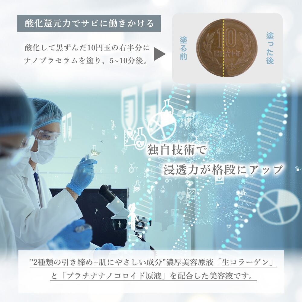・濃厚美容原液「生コラーゲン」と「プラチナナノコロイド原液」を配合した美容液