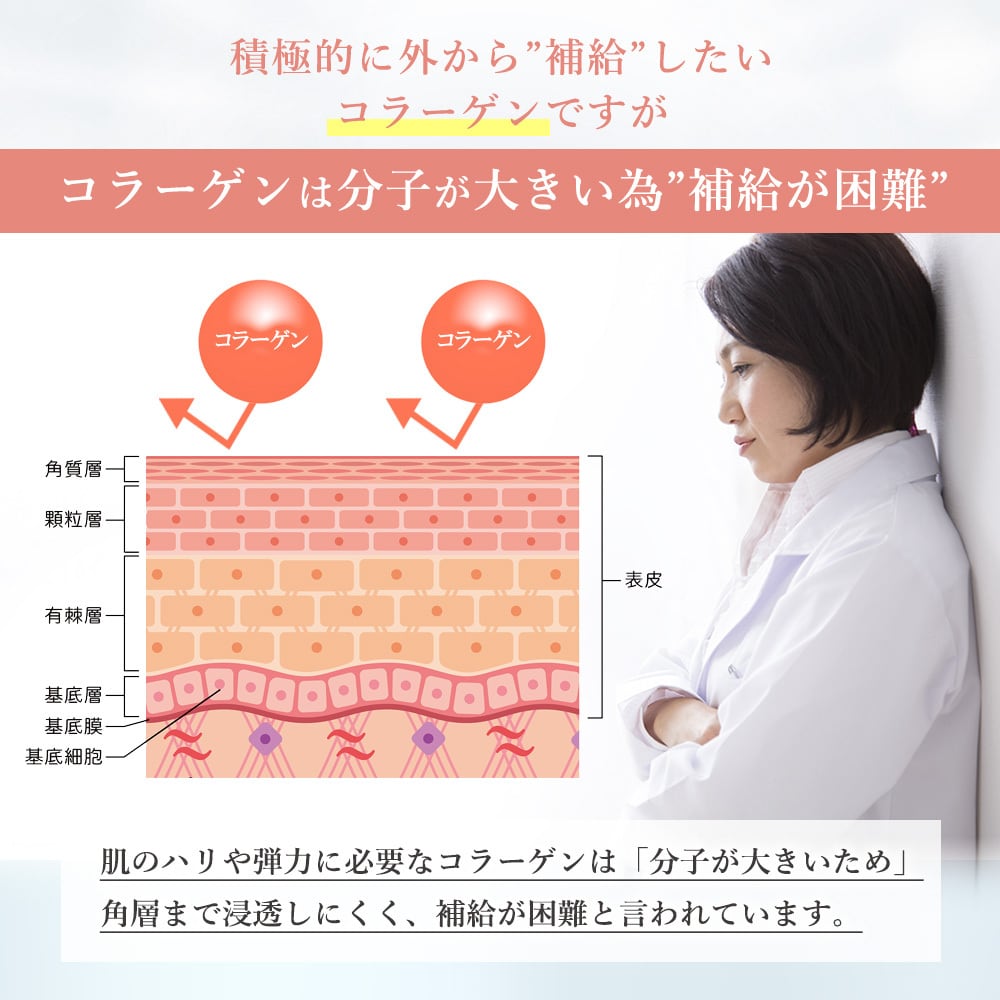 通常コラーゲンよりも保湿力に優れ、肌にツヤと弾力を与えてくれます。
